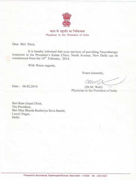 Letter for Services of Neurotherapy in President's Estate Clinic